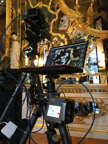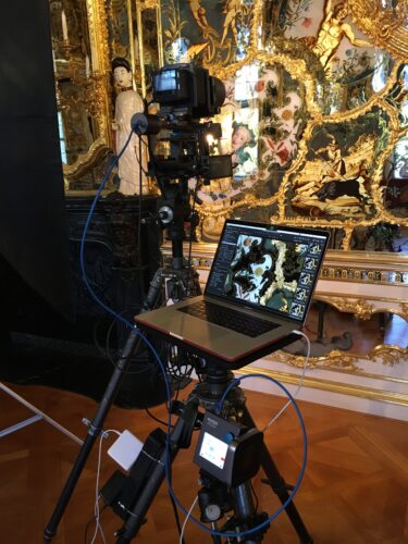 Dokumentation Hochauflösende Photokampagnen von Kunstdenkmälern Architektur Objekten. Evaluierung bei 600ppi von reflexfreier Hinterglasmalerei in der Würzburger Residenz